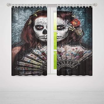 Iprint Window Curtains Queen Curtains Day Of The Dead Artwork Hand