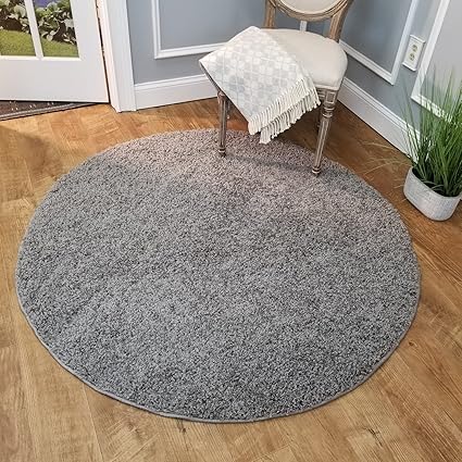 Buy 5 Round Grey Soft Shag Round Area Rug 5 Ft Plain Solid